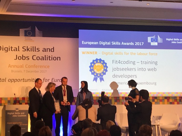Our coding school based at the Technoport in Esch-, Luxembourg, offers a full stack web development training. The programme includes 490 hours of trainer-lead coding classes, an Employability module with workshops focusing on career development and “soft skills”, and a dedicated mentoring program. This combination is a proven success, ensuring trainees can become professional junior web developers immediately on graduation.